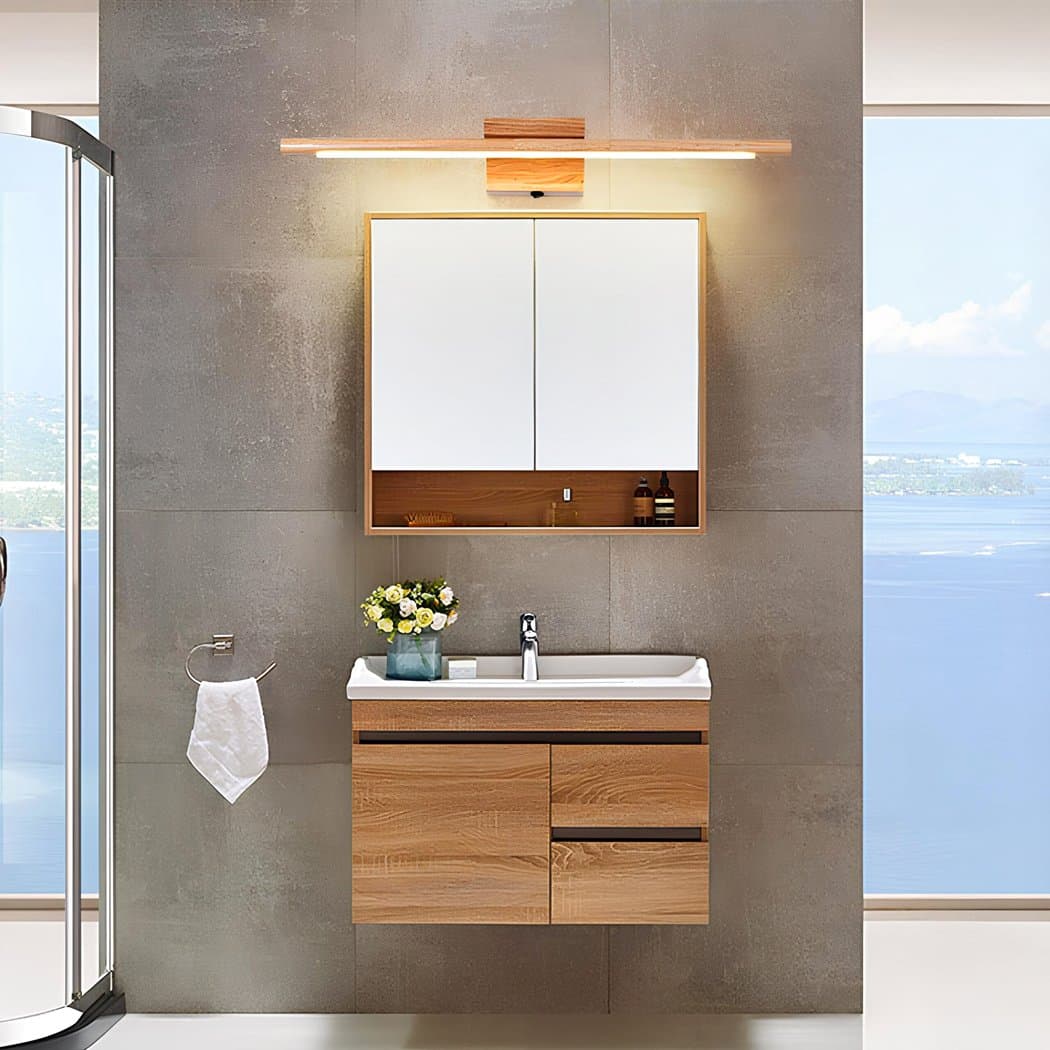 Wooden bathroom wall lamp