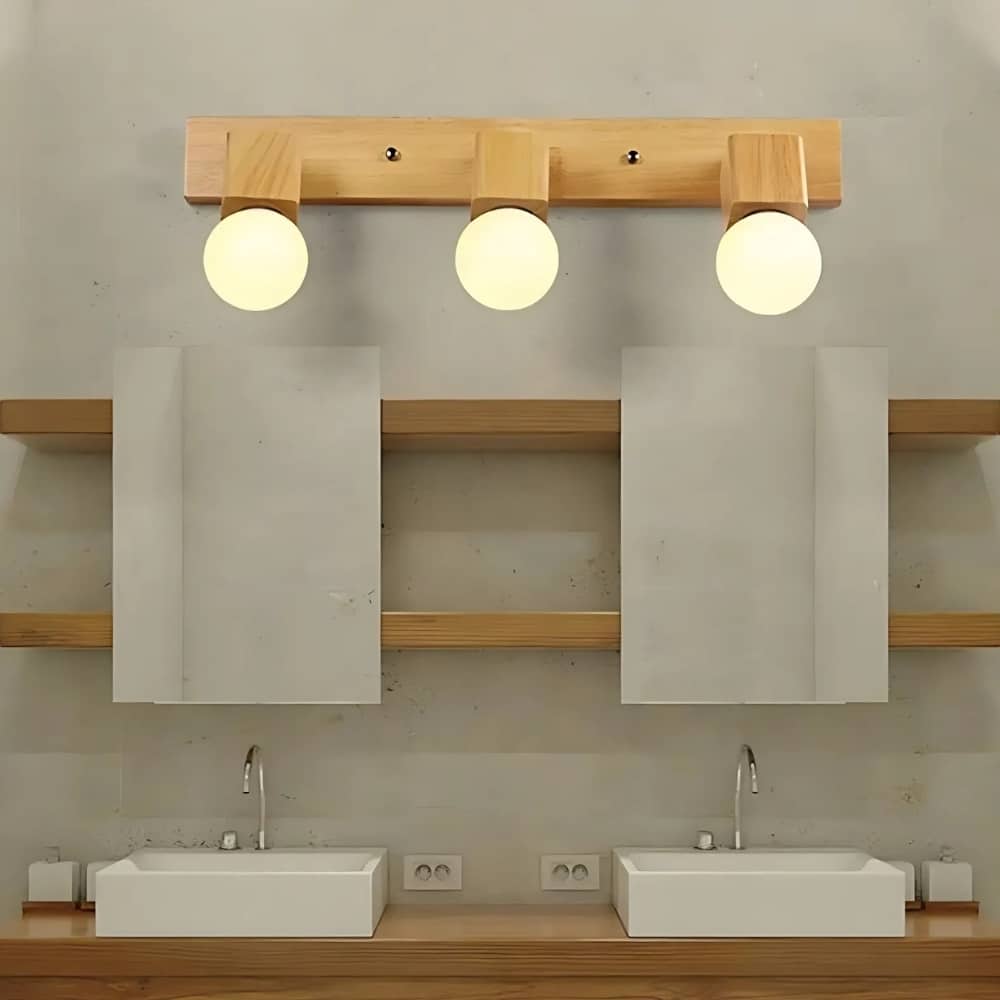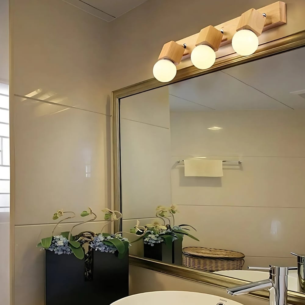 Wooden cube bathroom wall light