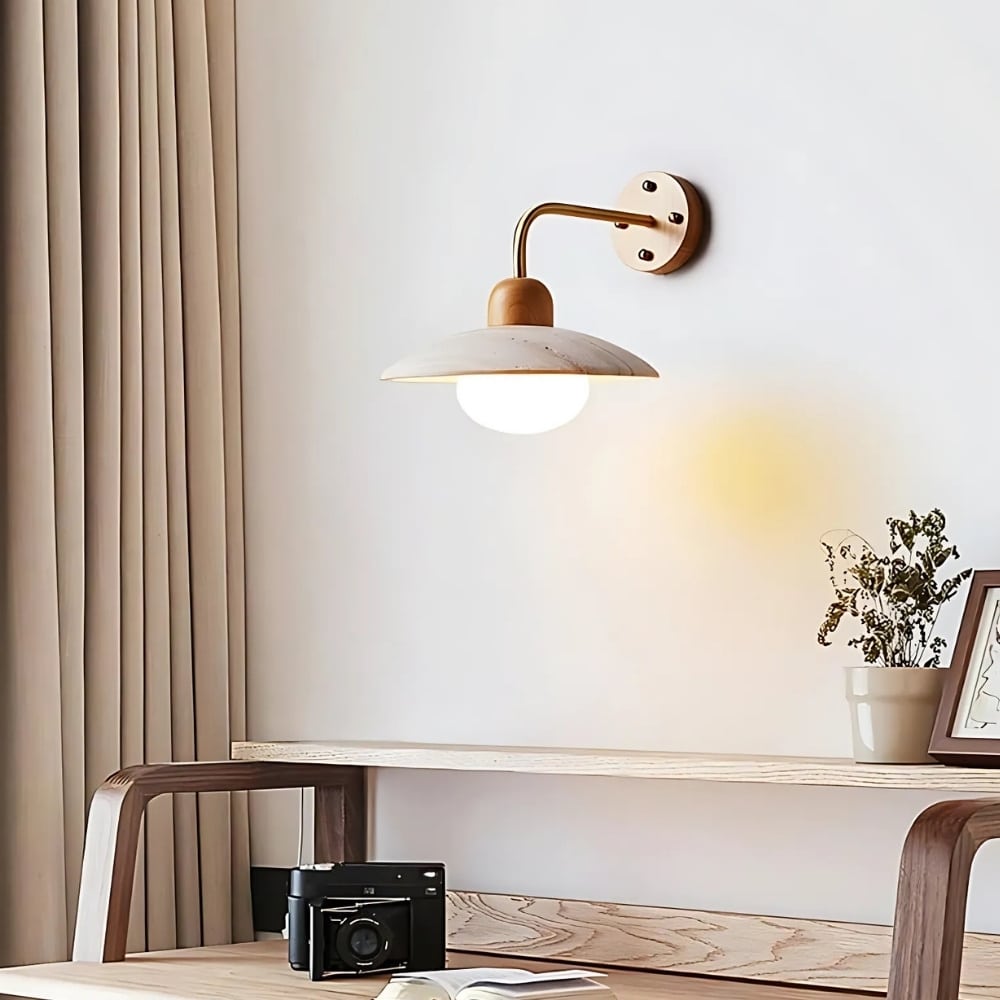 I'm really pleased with these wall lights, they're high quality and easy to install. The bulb supplied with them is warm, the wood and travertine are well worked, the finish is very natural, I love it. Thank you so much!