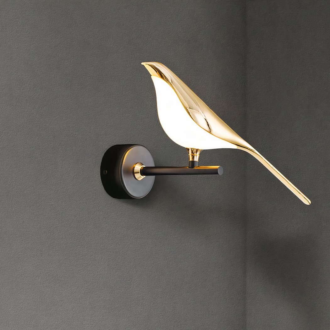 This golden magpie-shaped wall lamp creates an enchanting atmosphere. When the light is illuminated, the golden reflections accentuate the enchantment of this wall lamp.