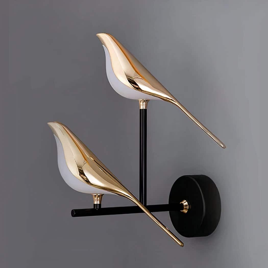 A harmonious blend of nature and modern design, this wall sconce, adorned with two golden magpies, is a luxurious luminaire. It depicts the image of two magnificent golden magpies perched atop a branch, creating an authentic connection with nature.