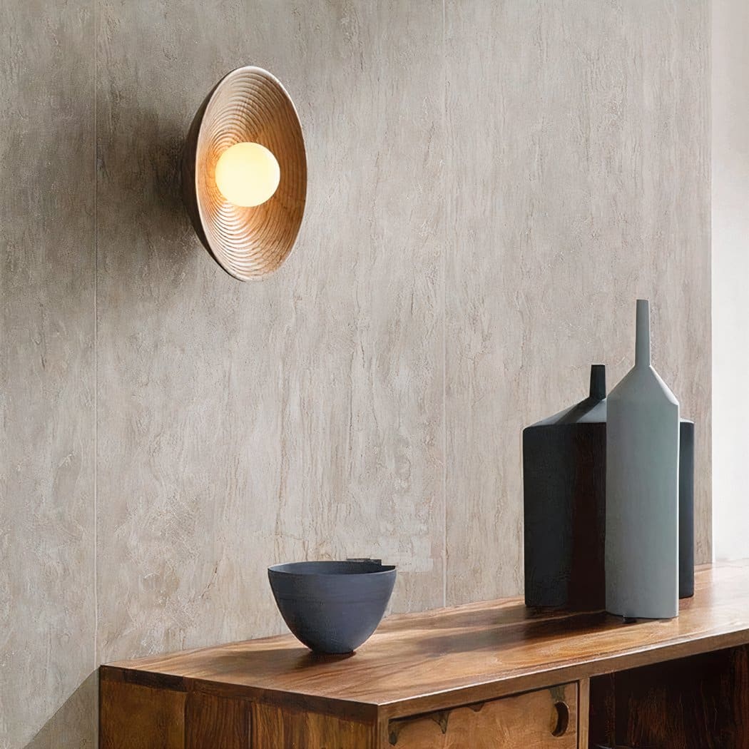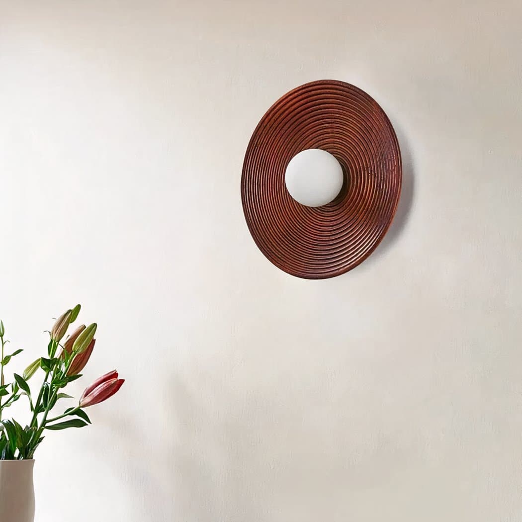 Our round wall sconce in real wood invites bohemian chic into your living space. Each piece, with its unique texture and natural grain, tells its own story, adding a touch of authenticity and character to your decor.