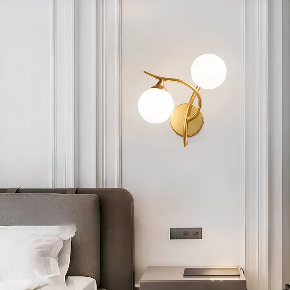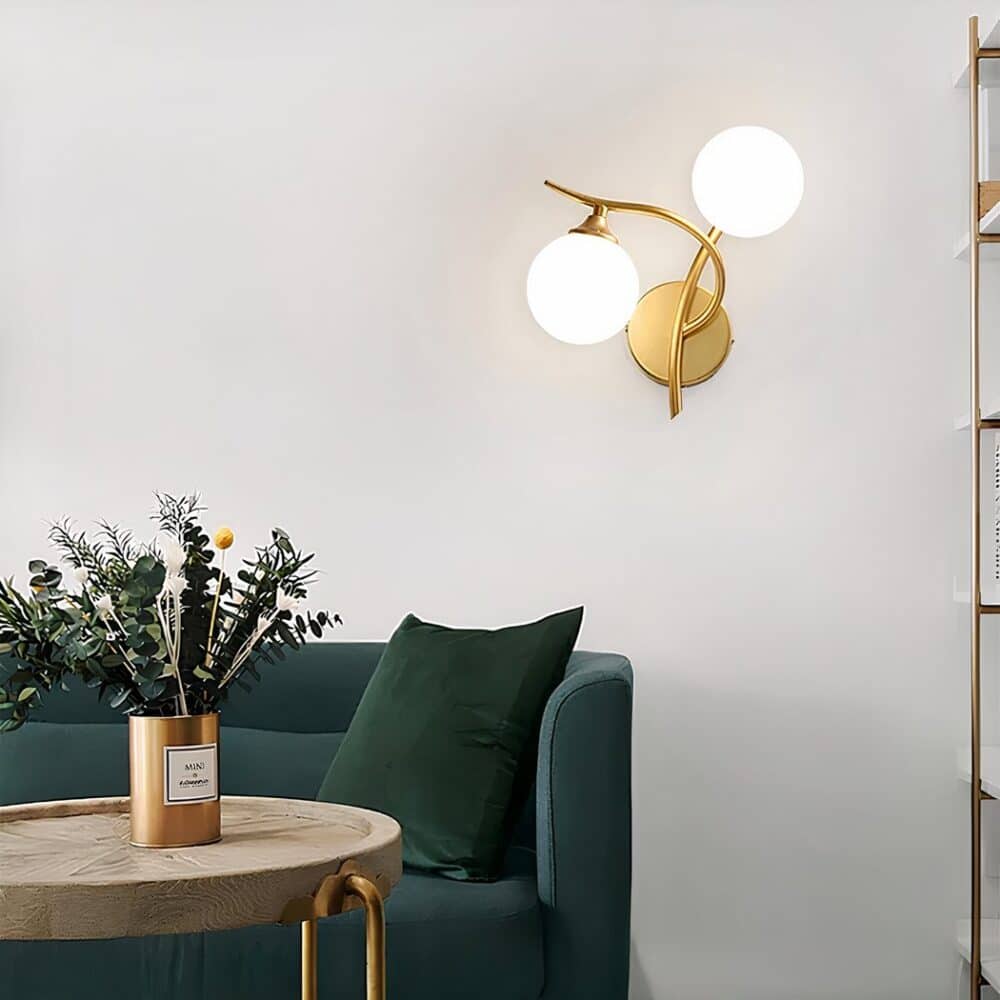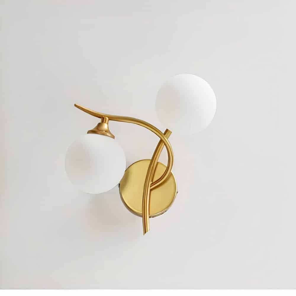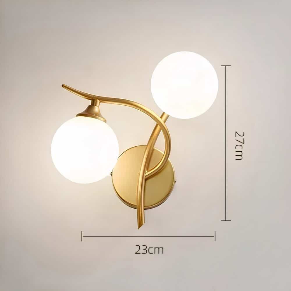 This wall sconce is the ideal piece of modern lighting design. With its elegant, abstract golden curves, it is combined with two luminous balls.
