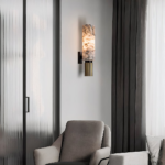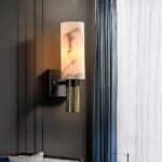 This living room wall light with its natural marble tube is a true work of art that will enhance the elegance of your interior. This luminaire is made from top-quality materials, highlighting the beauty and nobility of natural marble.