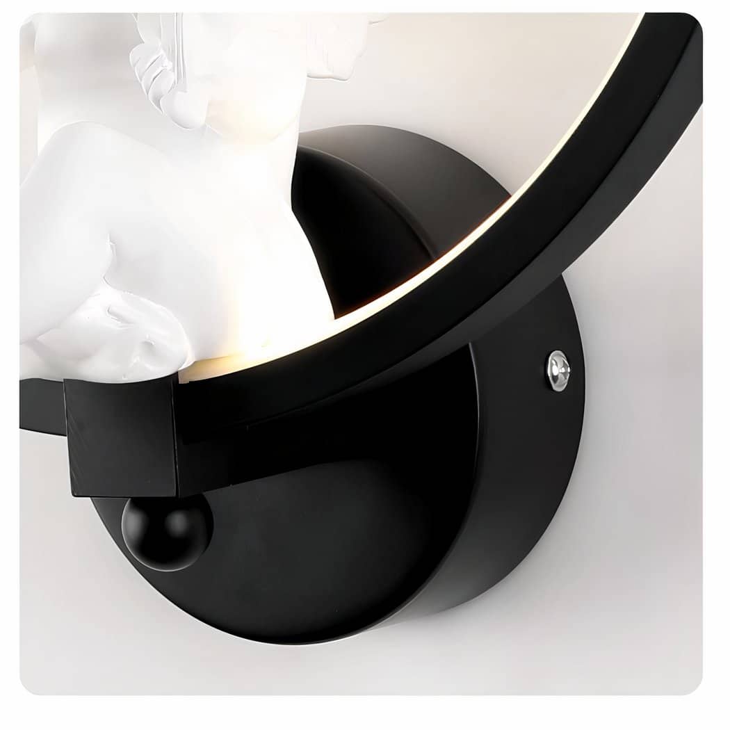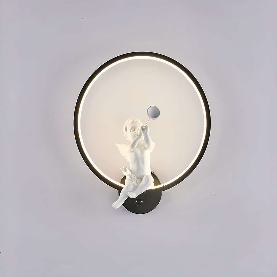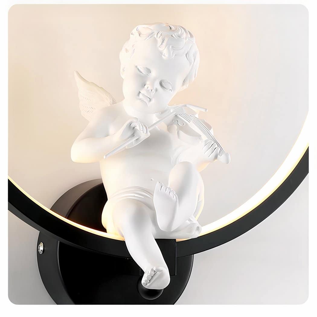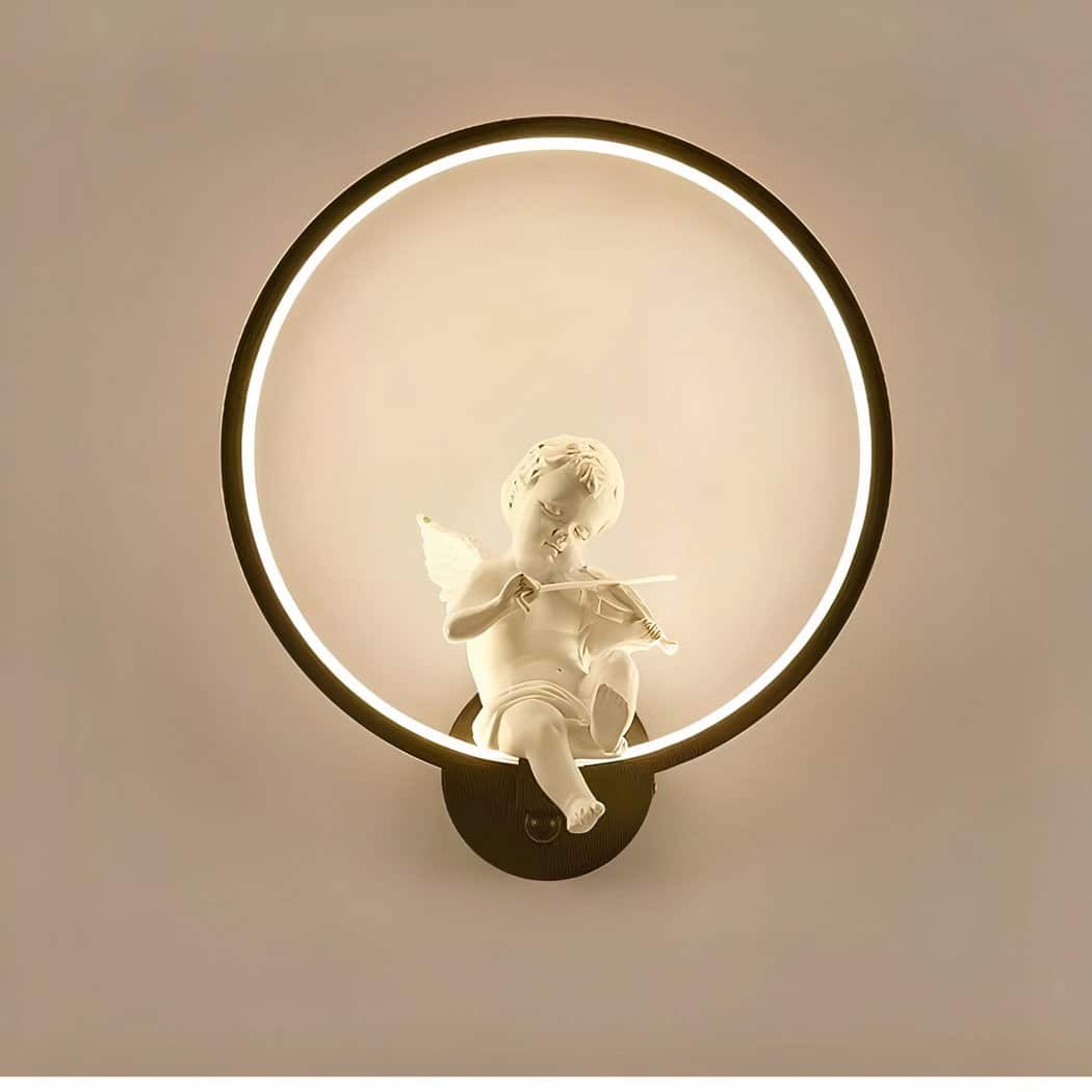 The luminous circle surrounding the angel diffuses a soft, warm light that creates a comforting, magical atmosphere. This subdued lighting highlights all the details of the angel and creates subtle reflections that add a touch of elegance to the room.