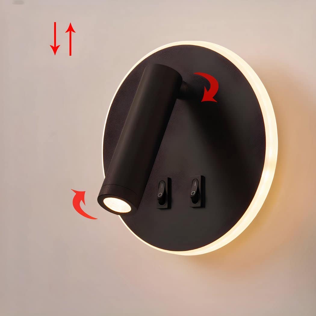 Give your room a modern look with our round reading light wall sconce featuring a luminous outline. This luminous outline adds a decorative touch to your interior, creating a warm ambience that invites you to relax and read.