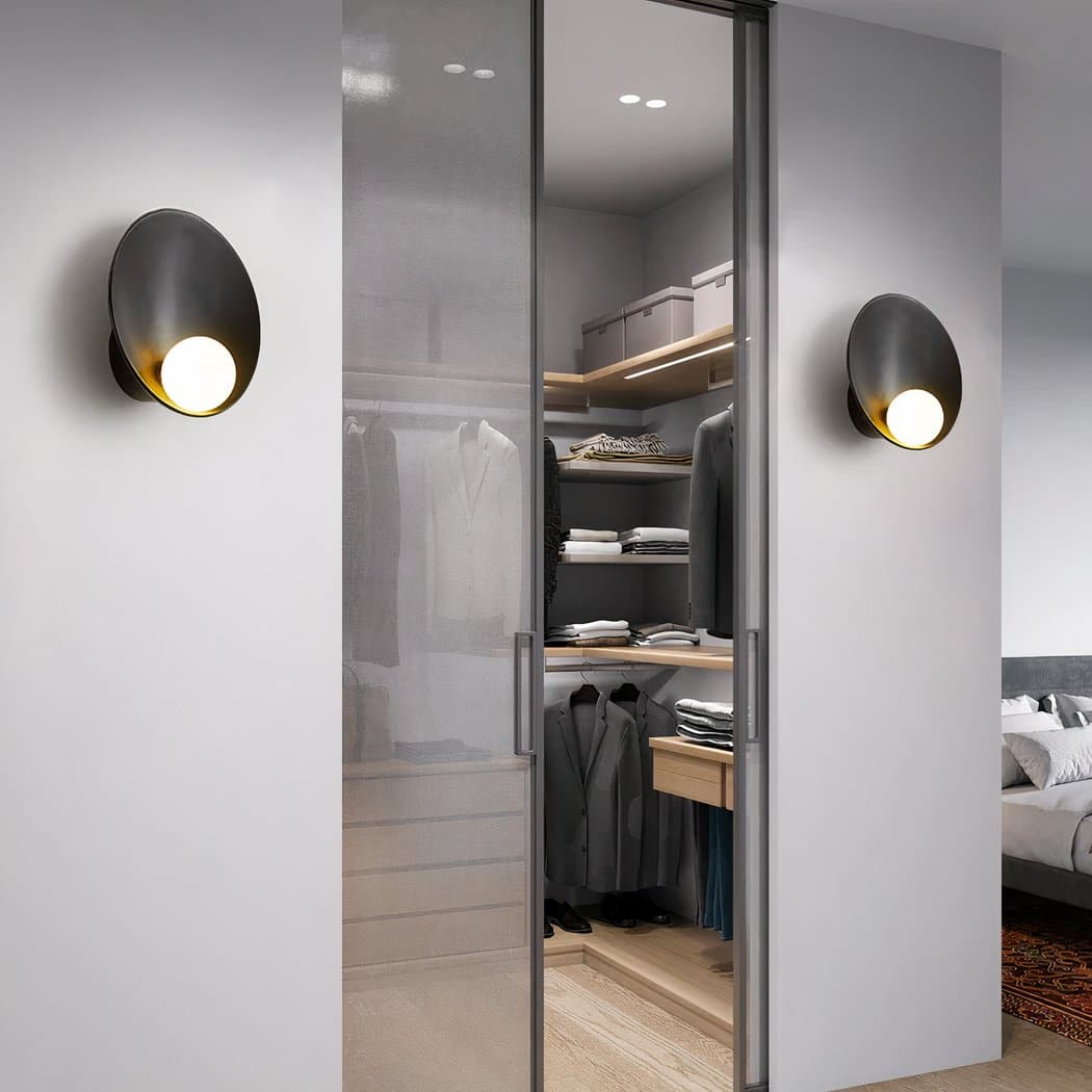 The Scandinavian-style round wall light captivates with its elegant, understated look. Its shape evokes an oyster with a luminous pearl inside, bringing a unique, artistic touch to your space.