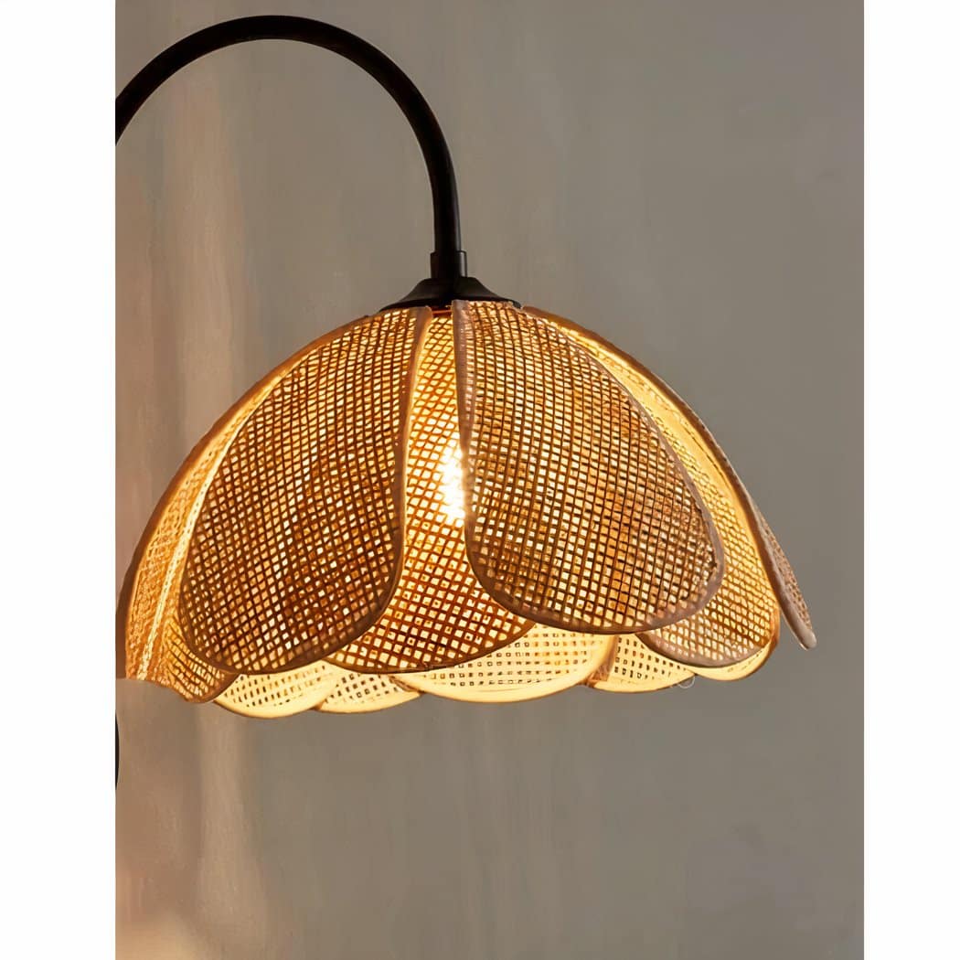 Illuminate your living space with our rustic cane wall sconce, adorned with a charming flower shape. This sconce is fitted with an included LED bulb offering three different light options: warm, cool or natural.