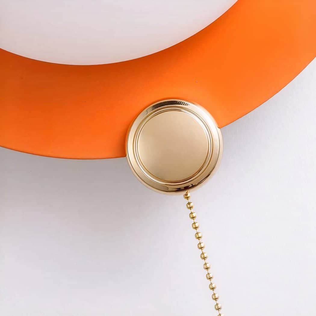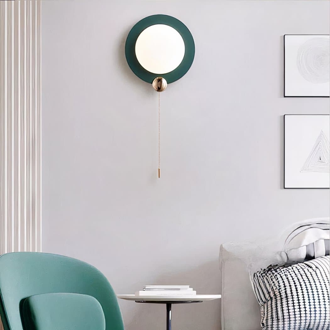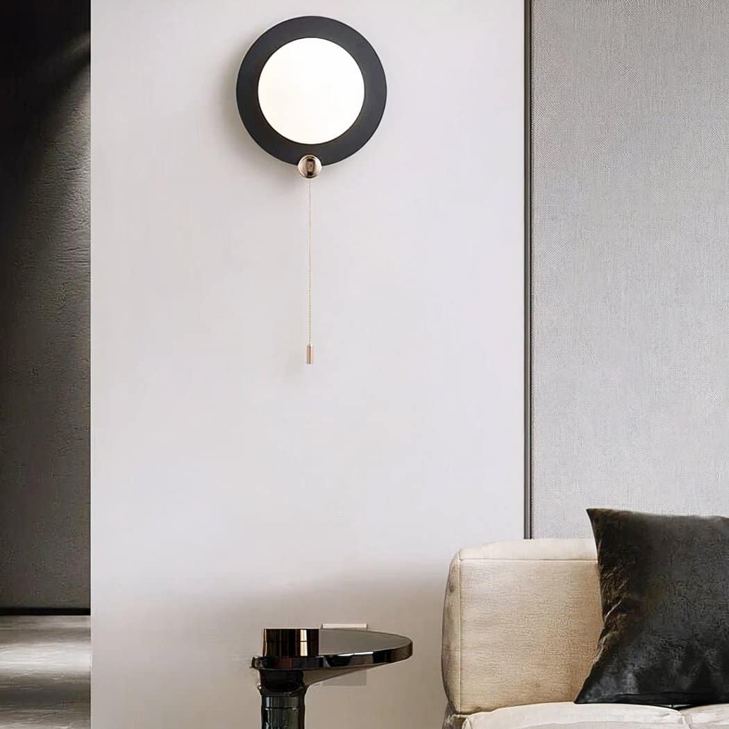 Transform your space into a modern haven with our round wall light. Its switch is located at the chain; simply pull it to switch your wall light on or off.