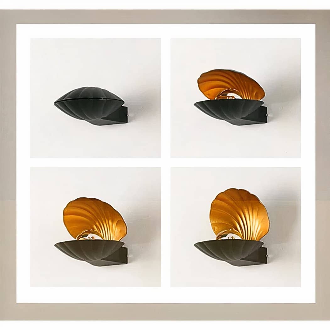 The unique design of our shell-shaped wall light gives you the freedom to modulate the light to suit your mood. With the upper shell folding back, you can close the shell completely for diffused light, or adjust it to create a more direct, muted lighting ambience.