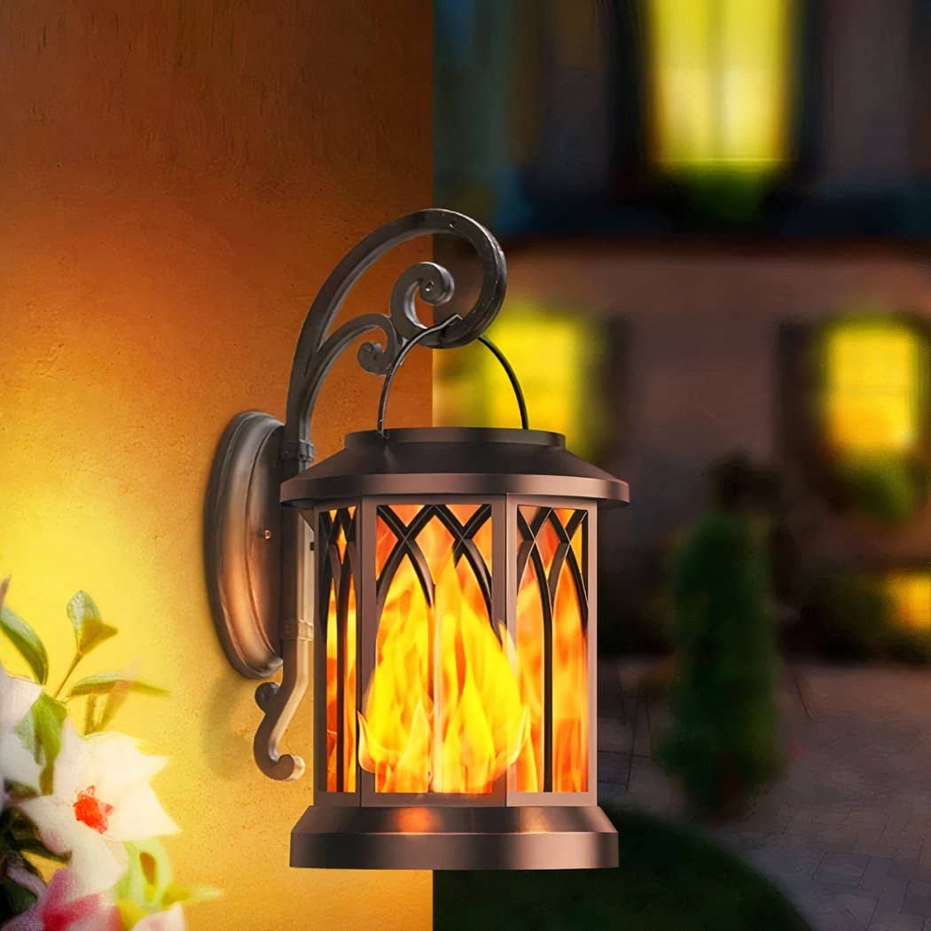 Immerse yourself in a retro-chic atmosphere with our flickering flame-effect wall sconce. Its original design, inspired by the lanterns of yesteryear, adds a touch of fantasy to your outdoor space.