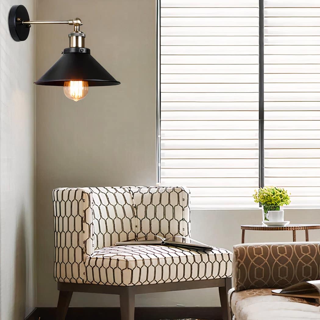 Made from quality materials, this vintage wall sconce will add a sophisticated retro touch to your decor. Its black metal shade brings a warm, cozy ambience to your room, while providing soft, pleasant light.