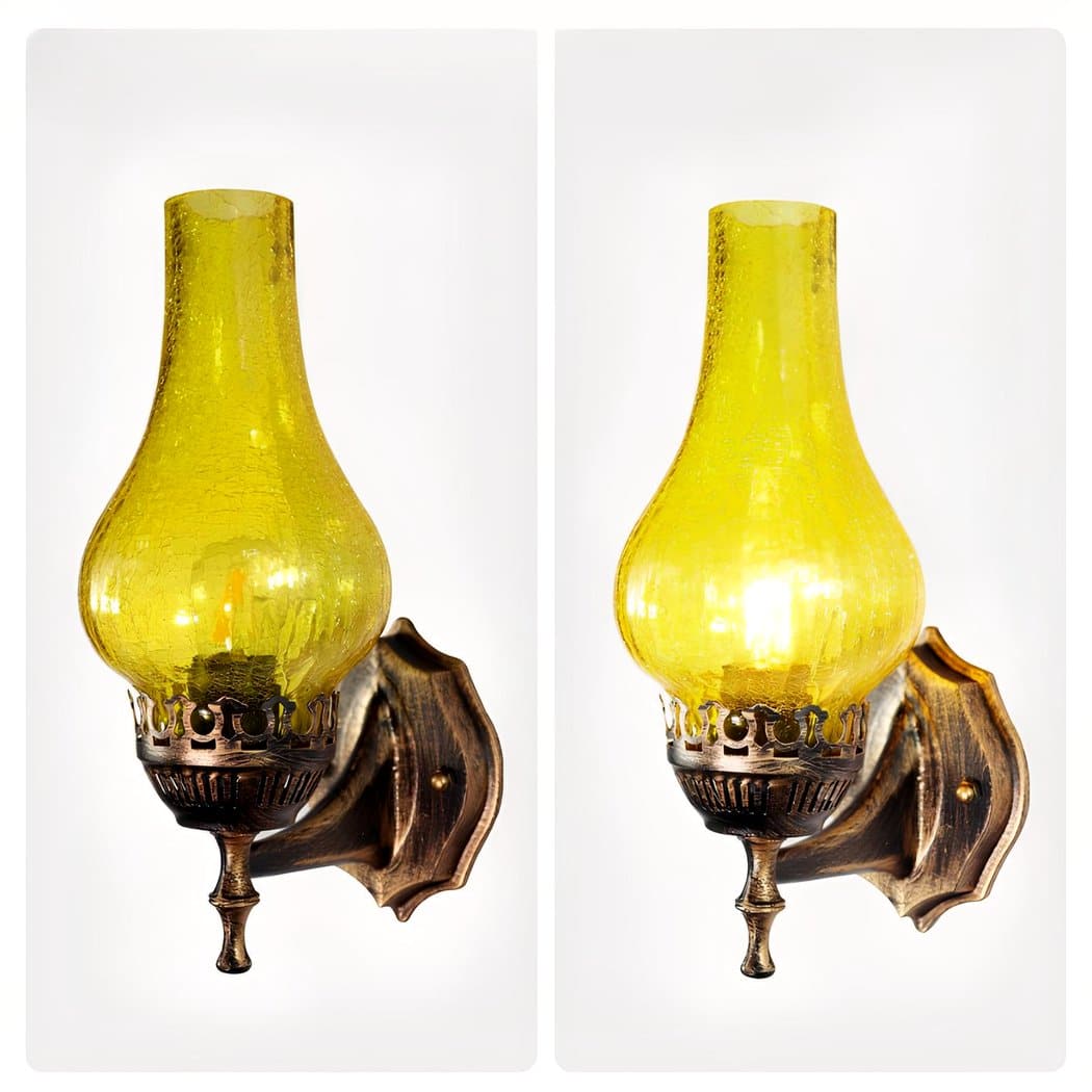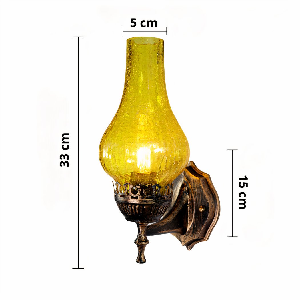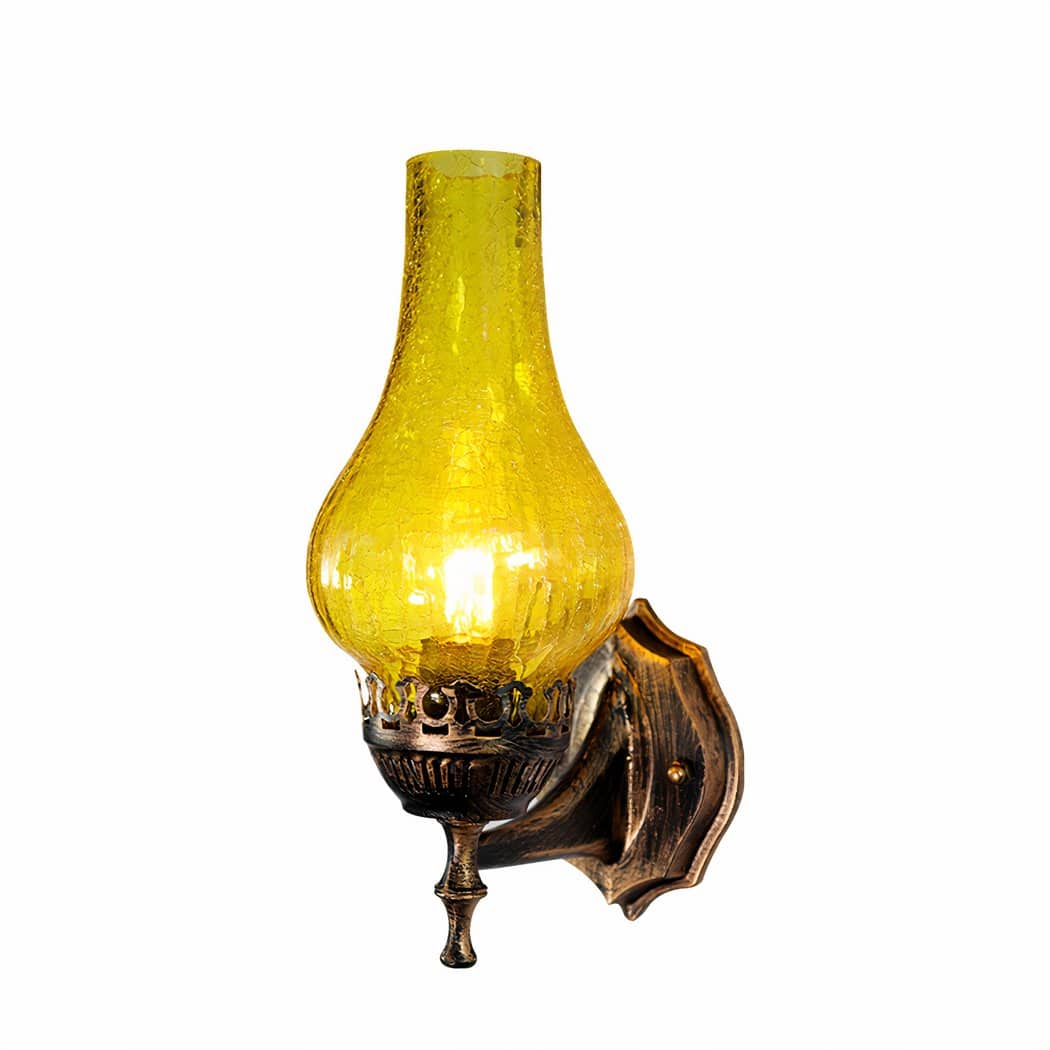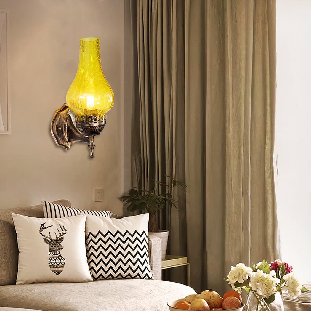 The wall sconce in the shape of a vintage oil lamp is a unique vintage design that brings a touch of authenticity to any room. With its silhouette reminiscent of the old oil lamps used in the past, this sconce gives the impression of actually having a lamp from yesteryear in your home.