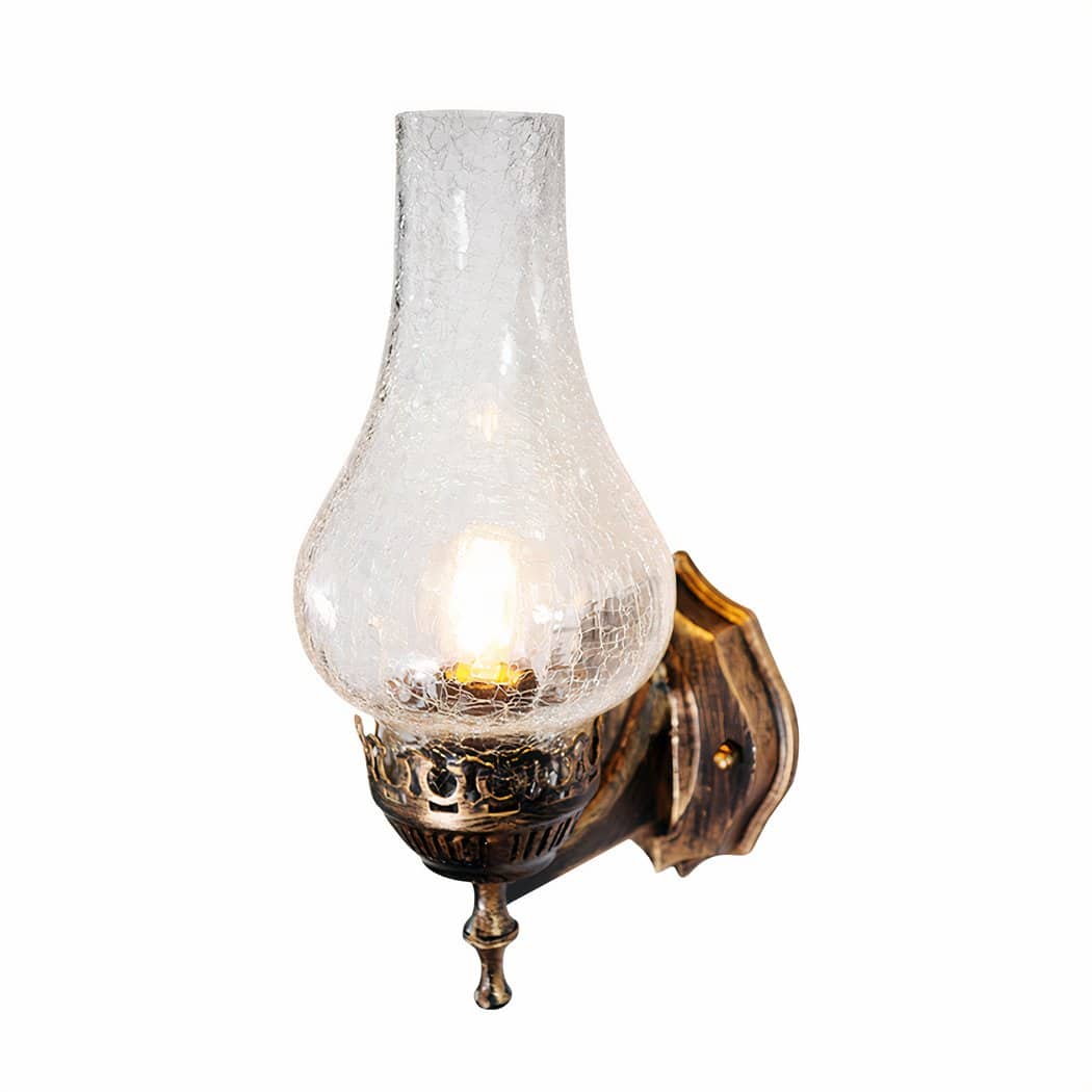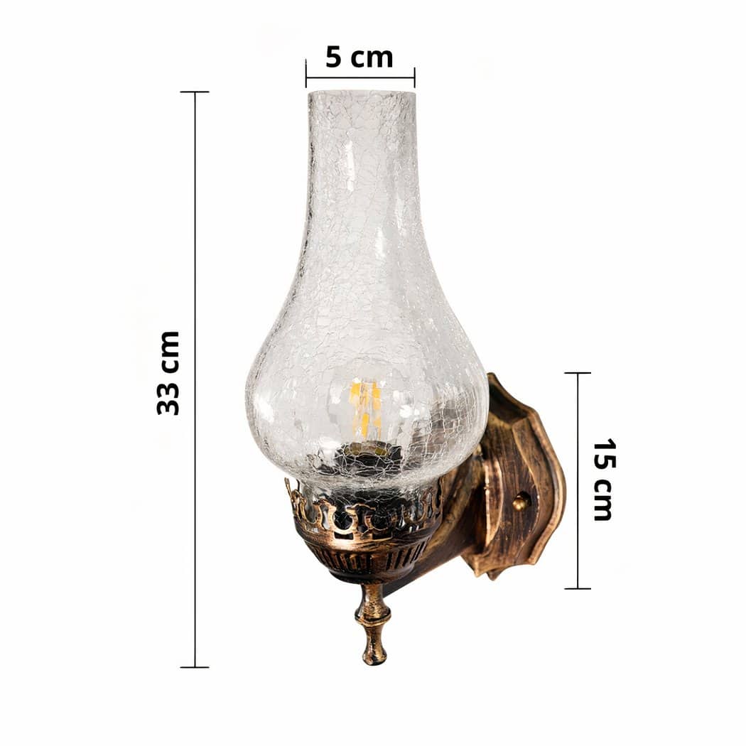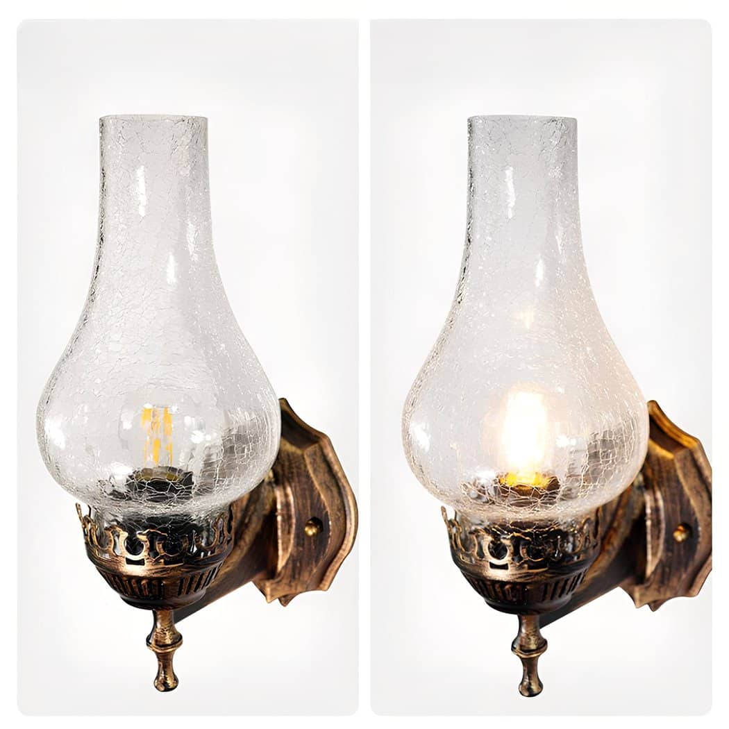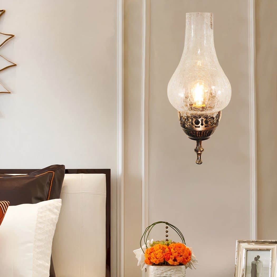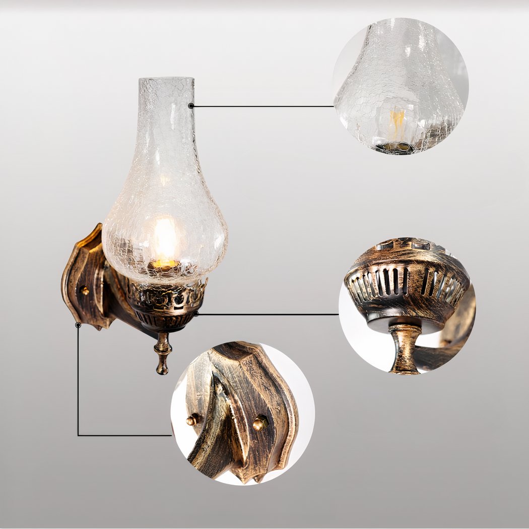 The imitation crackle glass of this wall sconce adds a warm, timeless dimension to its lighting. When the LED bulb is switched on, the effect of the crackled glass creates a soft ambience, reminiscent of candlelight in an old country house.