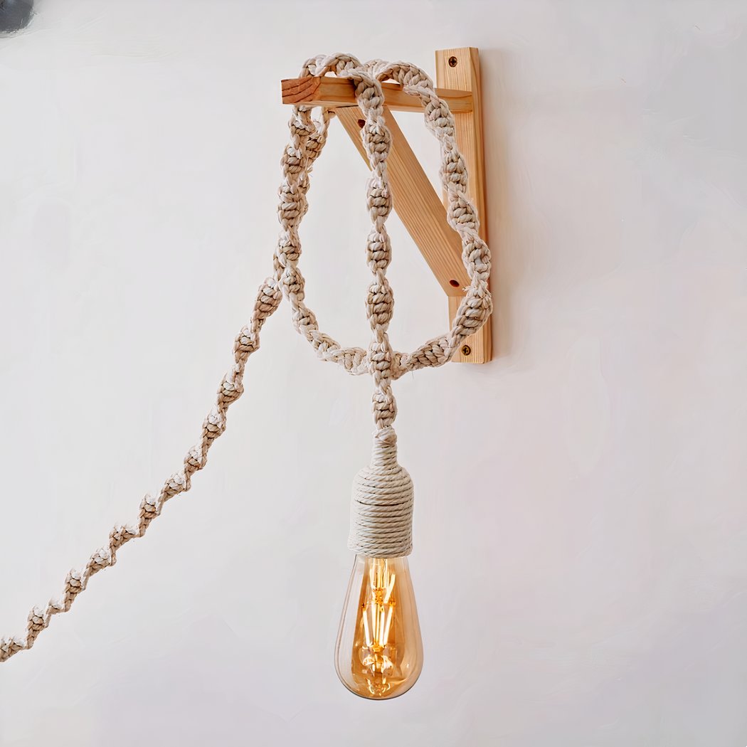 Hanging wired wall light in hemp rope